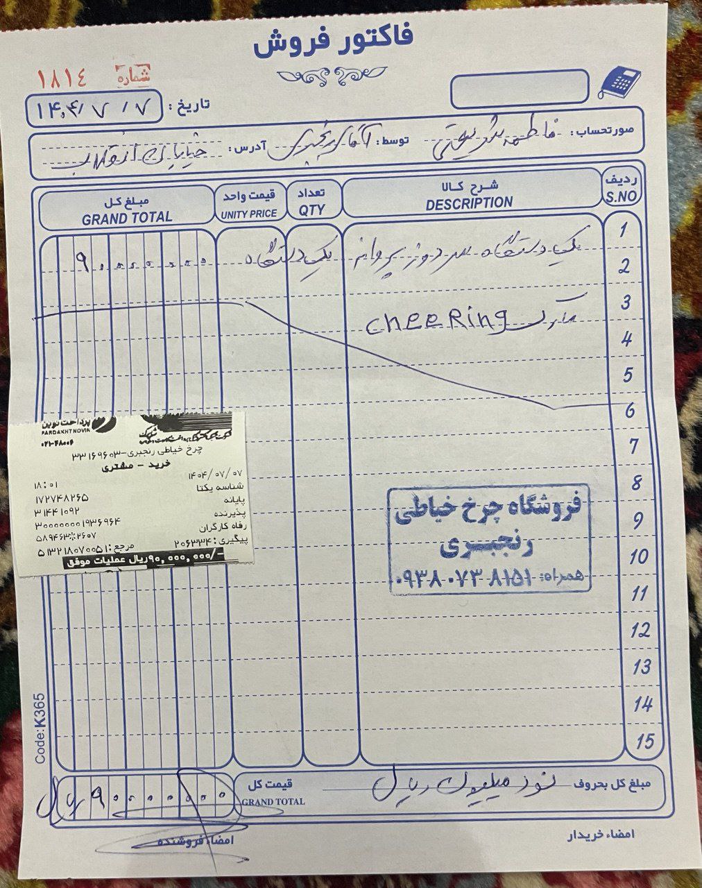 خانم فاطمه شریعتی 48 ساله است وپنج فرزند دارد که 4 فرزندش ازدواج کرده وپسر 13 سالهاش با انها زندگی می کند همسرش درآژانس باربری کارمی کند آنهامستاجر ند اوچرخ خیاطی دارد اما چون برای تولیدی کارمی کند نیازبه سردوز داشت.