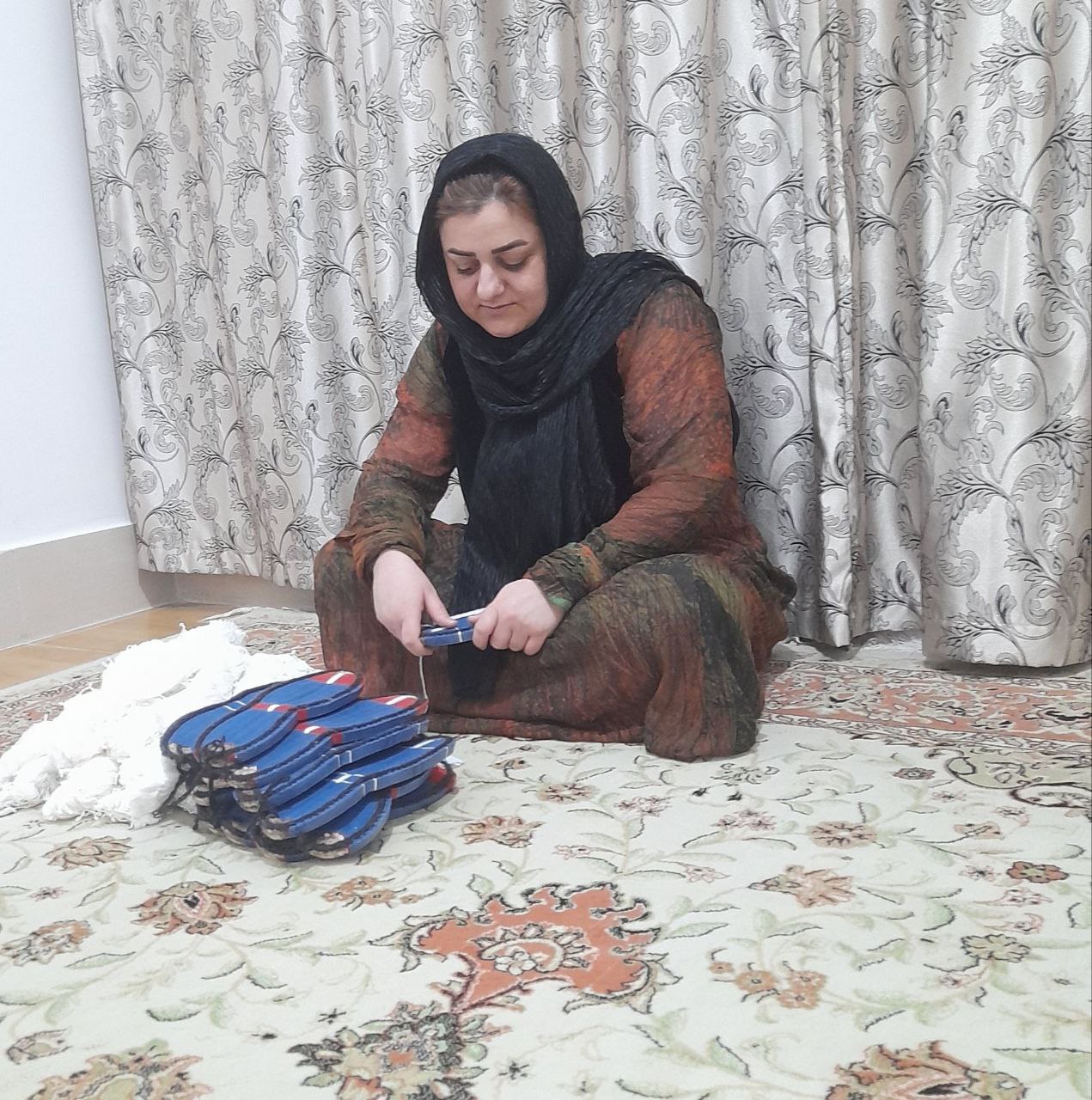 ازبودجه کمکهای مالی شما نیکوکاران وسایل کار گیوه بافی خریده وبه اوهدیه .
